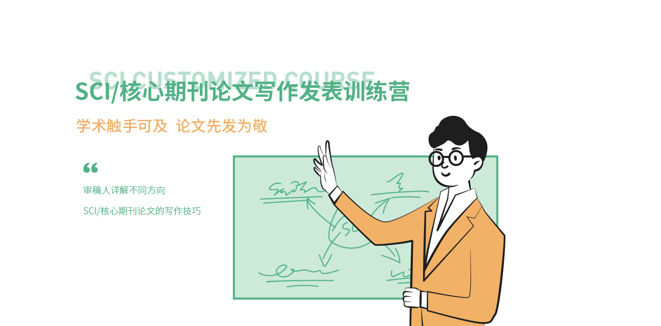 我们将通过这个服务帮助用户掌握期刊论文写作基本功,引导用户深入了解目标期刊的投稿风格,以及不同方向的SCI/核心期刊论文写作与投稿的关键技巧,提高文章命中率。